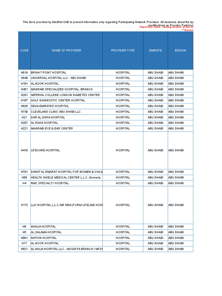 11 Network List April 2018 Dubai Clinic Free 30 Day Trial Scribd