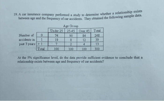 Solved 19 A Car Insurance Company Performed A Study To D