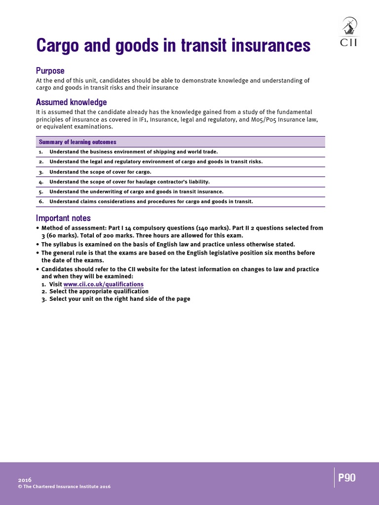 P90 Cargo And Goods In Transit Insurances Pdf Free Download