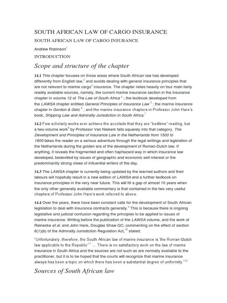 South African Law Of Cargo Insurance Precedent Contractual